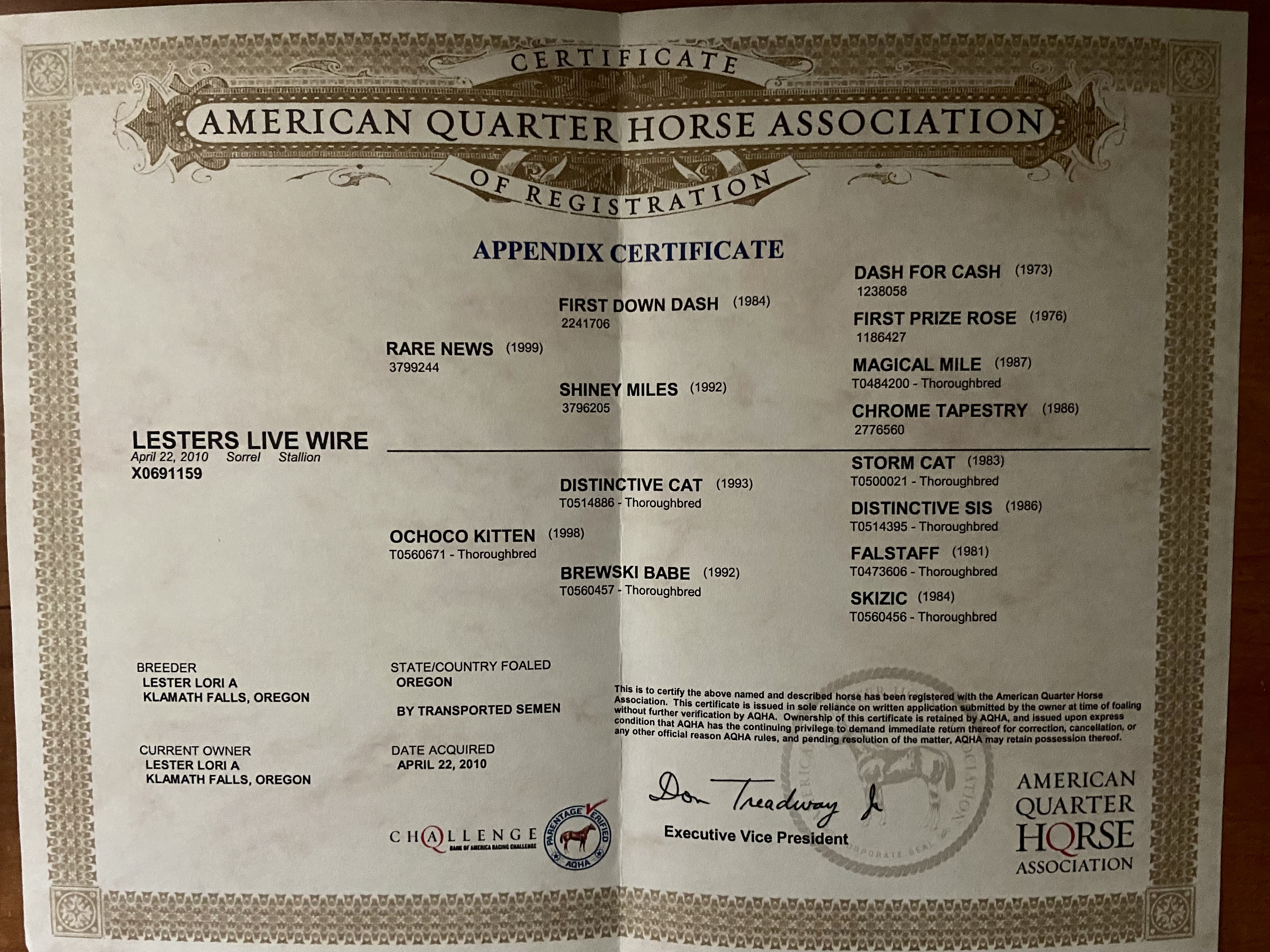 by World Champion & All-Time Leading Sire FIRST DOWN DASH, si 105,